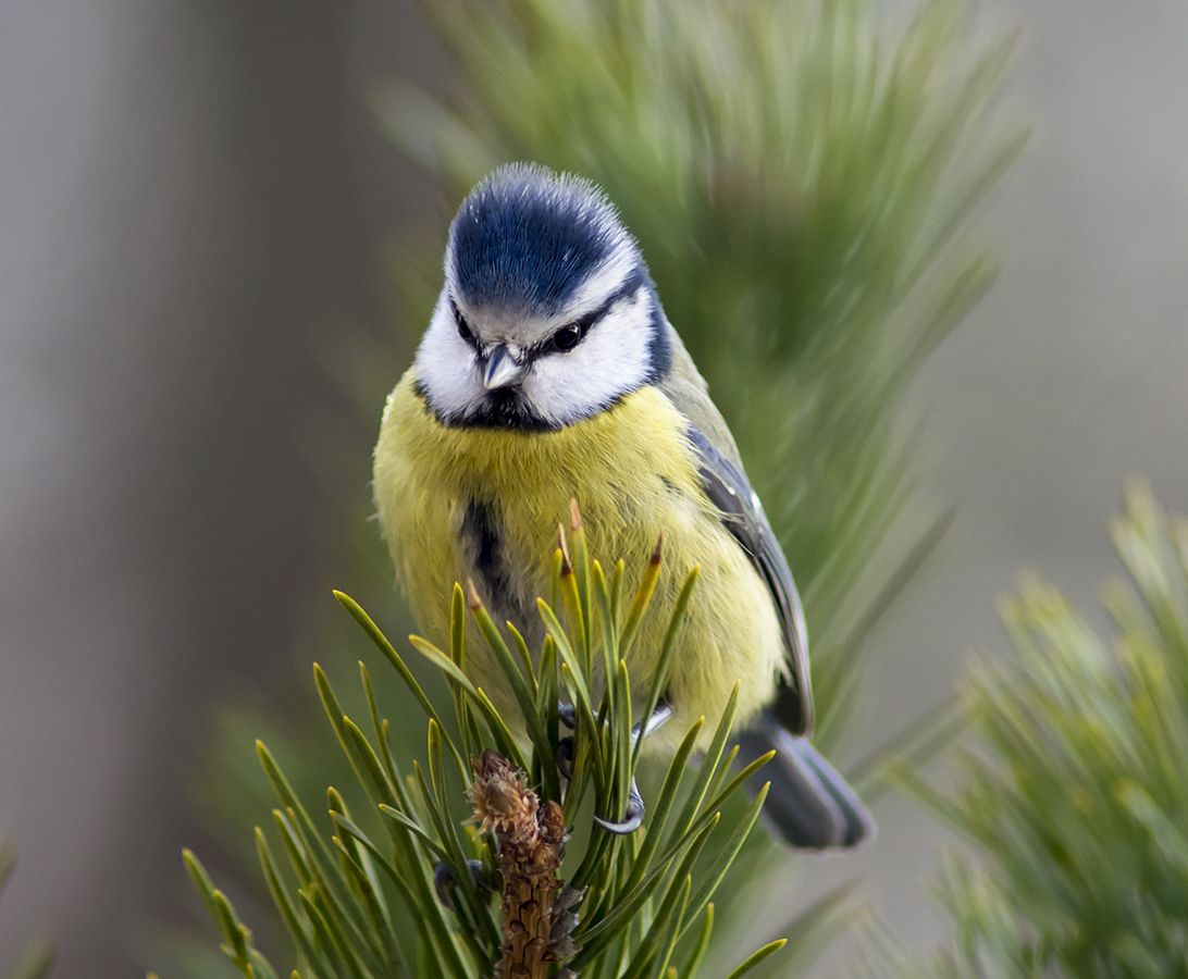 Musvit i fyrretræ Musvit med melorme Bogfinke i æbletræ